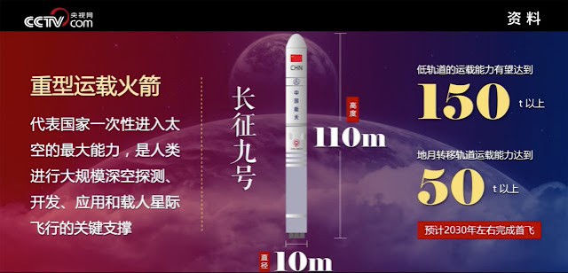 相当于三个长征五号的芯一级,把它捆绑起来,每一个芯级是三个组合体并联的,每一个组合体上有7台发动机,每一台发动机推力将近120吨左右,就这么一个庞然大物。当然还有二级,这样就把三个中国人分两次发射,近地轨道的运载能力可以达到大概70吨左右,地月转移轨道的能力,就是地球到月球的转移轨道的运载能力大约是27吨,这样可能分两次发射,将(实现)三个中国人在2030年以前登上月球。